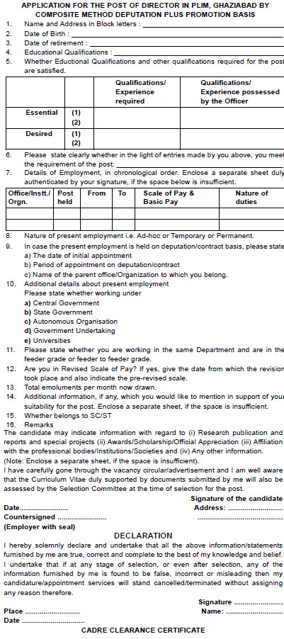 Applications are invited in the given proforma for the post of Director (General Central Service, Group 'A', Gazetted Non- Ministerial) in Pay Band-3 Rs. 15600-39100 + Grade Pay Rs. 7600/- for Pharmacopoeial Laboratory for Indian Medicine Ghaziabad by Composite method deputation (including short-term contract) plus promotion.