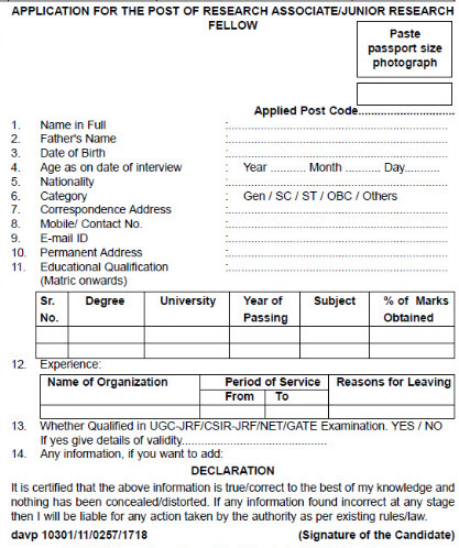 Eligible candidates may send their duly completed application as per format given in advertisement by e-mail hrddipas@gmail.com and appear for a Walk-in-interview at 1000 hrs on 21st November, 2017 for JRF and RA at DIPAS, Lucknow Road. Timarpur, Delhi-110054.