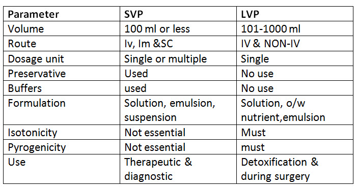 1. small volume parenterals (SVP) :- An injection that is packed in containers labeled as containing 100 ml or less.