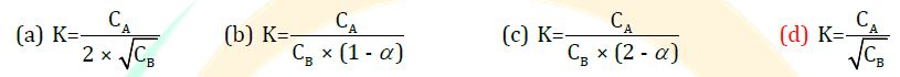 16. According to distribution law, select the appropriate expression for the concentration of a solute when it exist as monomer in solvent A and dimer in solvent B (Assume CA = concentration of solute in solvent A CB = concentration of solute in solvent B α= degree of dissociation)