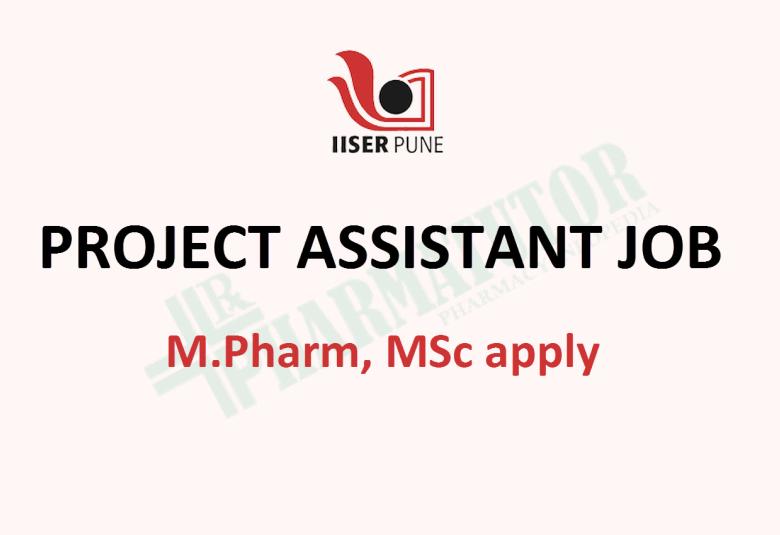 Vacancy for Project Assistant at IISER | M.Pharm, MSc apply