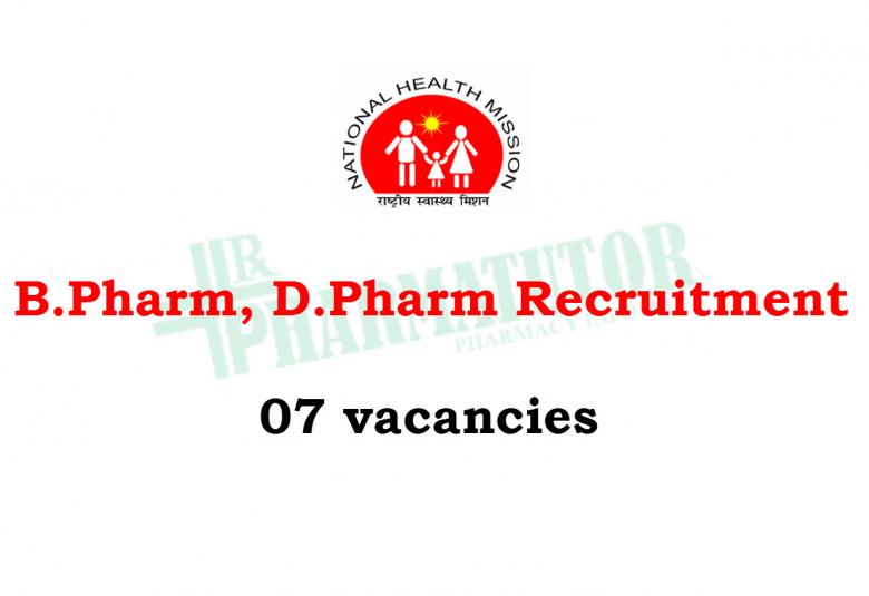Recruitment for B.Pharm, D.Pharm in State Health Society | 07 vacancies