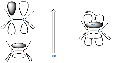(3). ALKENES AND ALKYNES: With unsaturated molecules, π-π* transitions become possible. These transitions are of rather high energy as well, but their positions are sensitive to the presence of substitution, as well be clear later , alkenes absorb around 175nm and alkynes absorb 170 nm Figure 1.3 shows this types of transitions.
