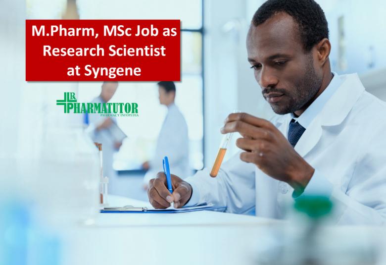 Opportunity for M.Pharm, MSc as Research Scientist at Syngene International Ltd