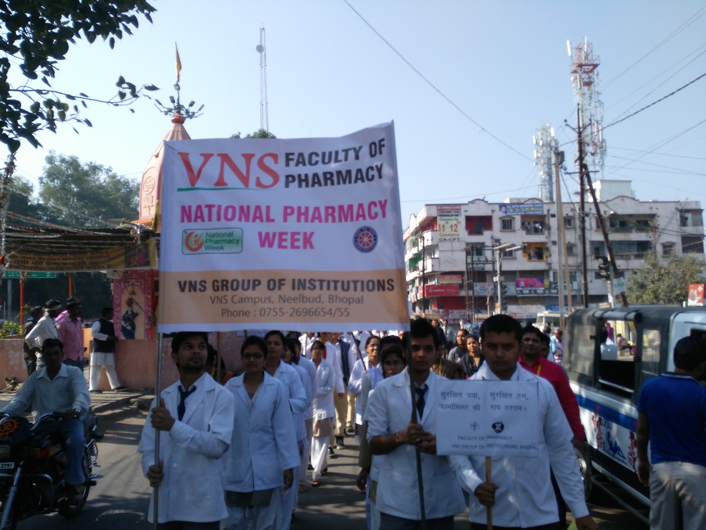 Mr. J. K. Singh, Chairman, VNS Group of Institutions (VNSGI), Bhopal, Dr. D. K. Swami, Group Director, VNSGI, Dr. V. V. Dhote, Associate Director, VNSFOP, Dr. P. K. Singour, Vice Principal, VNSFOP and Prof. P. Saraf, Registrar, VNSFOP highlighted the role and responsibilities of pharmacist and appreciated the students.