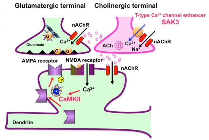 In their study, the researchers found that the T-type calcium channel enhancer, SAK3, stimulates the release of acetylcholine in the brain and improves cognition by activating the memory molecule CaMKII. According to Professor Fukunaga, SAK3 also reduces the production of amyloid beta protein in the study's model mice. This, he says, could lead to the development of the first disease-modifying drug to prevent mild to severe Alzheimer disease.