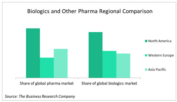 North America is the leading region for both biologic and other pharma sales but the story is different in second and third place. Asia Pacific has overtaken Western Europe in small-molecule drug sales but in biologics, Western Europe is still ahead of Asia Pacific. The high cost of biologics, making them more affordable in affluent Western Europe, the greater prevalence there of the age-related diseases that many current biologics are designed to treat, and the more rapid growth of the biosimilars market in Asia Pacific account for this difference.