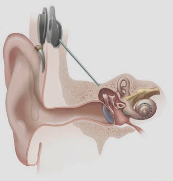 The Nucleus Hybrid L24 Cochlear Implant System combines the functions of a cochlear implant and a hearing aid. This electronic device consists of an external microphone and speech processor that picks up sounds from the environment and converts them into electrical impulses. The impulses are transmitted to the cochlea through a small bundle of implanted electrodes, creating a sense of sound that the user learns to associate with the mid- and high-frequency sounds they remember. The hearing aid portion of the device is inserted into the outer ear canal like a conventional hearing aid, and can amplify sounds in the low-frequency range.
