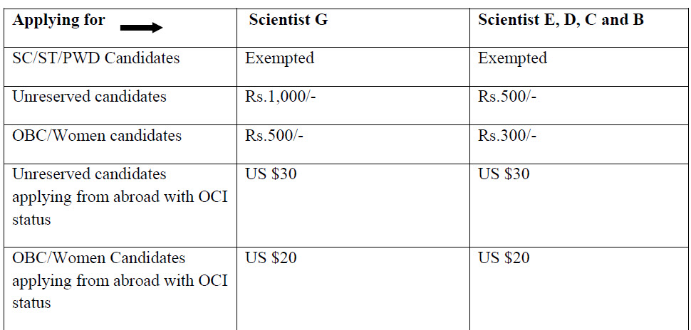 6. An application fee, as per the following details, is payable through online mode or through a crossed Demand Draft drawn on any nationalized bank and valid for at least 3 months in favour of “Director, National Centre for Cell Science, Pune” payable at Pune preferably on State Bank of India, NCL branch, National Chemical Laboratory Campus, Pune - 411 008. Account No.33794408771, (IFSC code- SBIN0003552), MICR No.411002012.