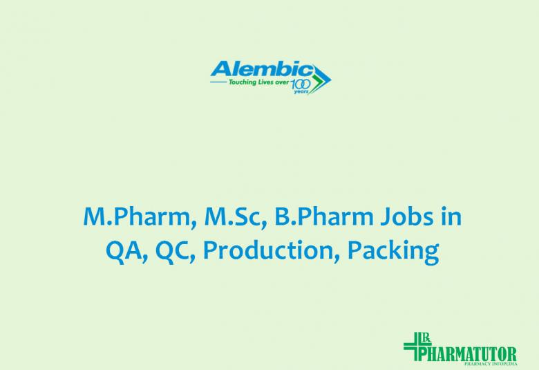 Walk in interview for M.Pharm, M.Sc, B.Pharm in QA, QC, Production, Packing at Alembic Pharmaceuticals Limited