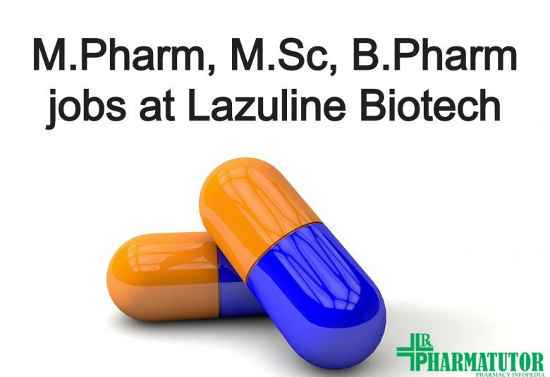 Openings for Freshers M.Pharm, M.Sc, B.Pharm at Lazuline Biotech