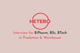 Interview for B.Pharm, BSc, BTech in Prodution & Warehouse at Hetero