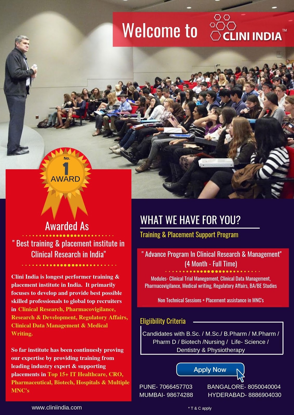 Build career in Clinical Research with Clini India. Join Advanced Program in Clinical Research & Management. Admissions Open for June, July and August 2019
